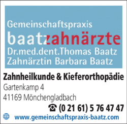 Es ist sehr einfach Kontakt mit Baatz, Klaus-Thomas Dr. u. Baatz, Barbara aufzunehmen. Einfach die passenden Kontaktmöglichkeiten wie Adresse oder Mail in unserem Kontaktdaten-Bereich auswählen. Hier finden Sie alle Kontaktdaten.