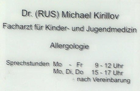 Facharzt für Kinder- und Jugendmedizin Allergologie - Praxis Dr. (RUS) Kirillov