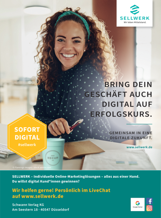 SELLWERK eine Marke Ihres Schwann Verlags - Ihre Onlinemarketing-Partner für effektive Werbung. Verzeichniswerbung in Gelbe Seiten - Google AdWords - Facebook-Ads - Websites u.v.m.! Wir beraten Sie gerne!