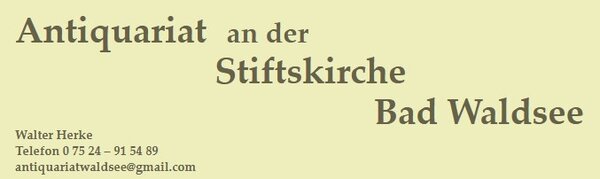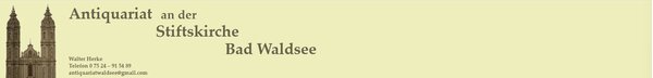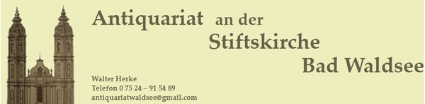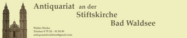 Seit 1999 befindet sich das Antiquariat an der Stiftskirche in der mittelalterlichen Altstadt von Bad Waldsee, direkt gegenüber dem Hauptportal des ehemaligen Augustiner-Chorherrenstifts. Inhaber Walter Herke bietet ein vielfältiges Sortiment an antiquarischen Büchern, Grafiken, Kunstwerken, Antiquitäten sowie Schmuck und Gold. Besondere Schwerpunkte liegen auf regionaler Orts- und Landeskunde, Geschichte, Theologie, Naturwissenschaft, Kinderbüchern, Reisen und Esoterik. Das Antiquariat zeichnet sich durch sorgfältige Auswahl und fachkundige Beratung aus. Mit einem Mix aus Tradition und persönlichem Engagement ist das Geschäft eine feste Größe für Kulturinteressierte in der Region.