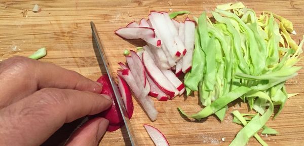 Je mehr Angriffsfläche das geschnittene Gemüse den Milchsäurebakterien bietet, desto schneller läuft die Fermentation ab. Möchten Sie Ihre fermentierten Lebensmittel möglichst bald genießen, schneiden Sie das Gemüse also möglichst fein. Dazu können Sie verschiedene Geräte benutzen, etwa