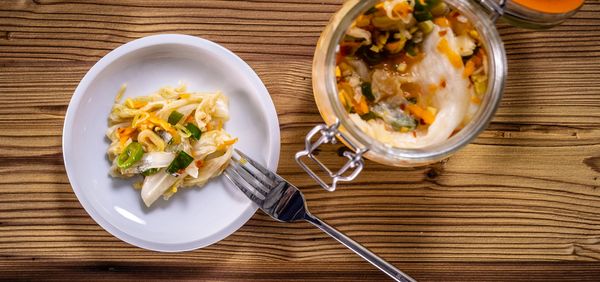 Hat das Kimchi genug gegoren, meist nach zwei bis fünf Tagen, Glas in den Kühlschrank stellen. Die Kälte beendet den Gärungsprozess. Gekühlt hält sich Kimchi etwa drei Monate. Es passt gut zu Reisgerichten und Pfannkuchen. Außerdem lässt sich mit Kimchi leicht eine leckere Suppe herstellen: Zwiebeln und Knoblauch anbraten, Kohl hinzugeben und mit Brühe auffüllen.